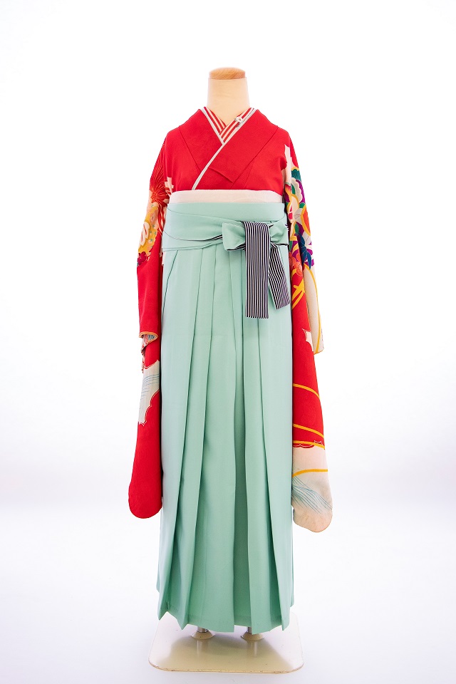 色:赤 柄:雲取り・花くす玉 袴/エメラルドグリーン